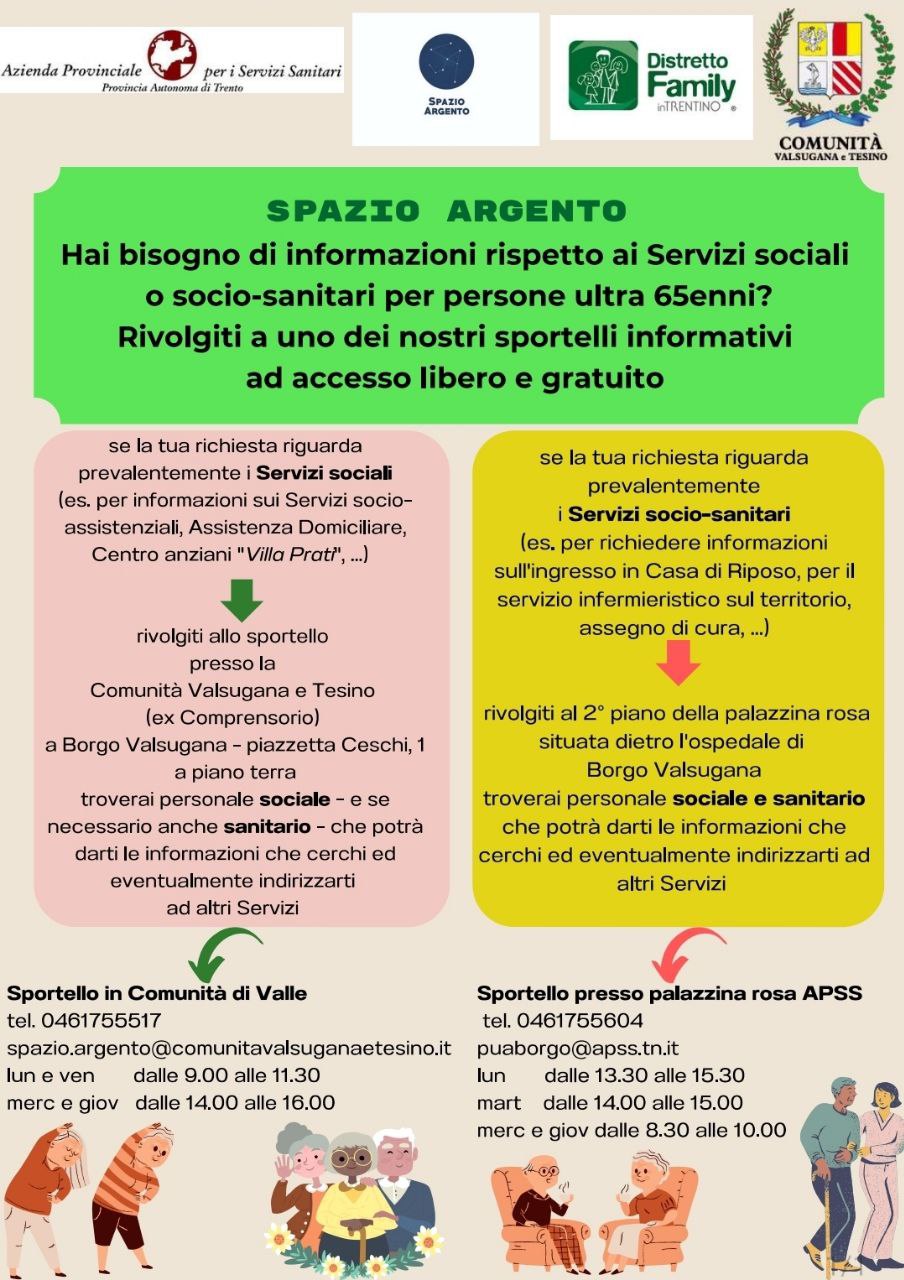 Descrizione Per le persone ultra 65enni che hanno bisogno di informazioni rispetto ai Servizi Sociali o socio-sanitari è disponibile lo spazio argento