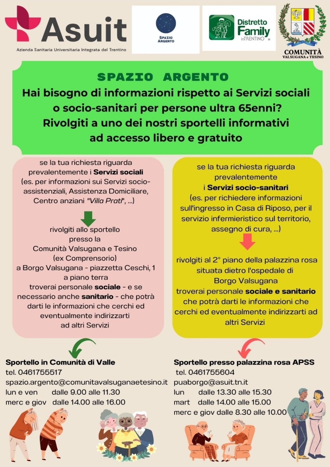 Descrizione Per le persone ultra 65enni che hanno bisogno di informazioni rispetto ai Servizi Sociali o socio-sanitari è disponibile lo spazio argento